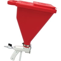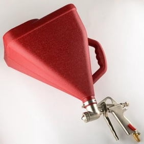Adjusting the nozzle on a hopper gun changes the look of the texture. A large nozzle is used on the spray gun to spray popcorn texture because of the popcorn in the mud. Hopper holds a sizable quantity of material while the 3 included nozzles allow you to spray aggregated and non-aggregated materials in popcorn knock-down and orange peel patterns.