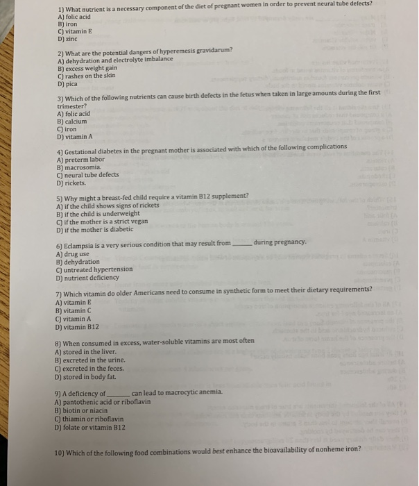 Which of the following nutrients taken as a prenatal supplement has been found to be associated with a lower incidence of neural tube defects. Of the following nutrient needs which is considered the most difficult to meet during pregnancy often because of low body stores. Although this vitamin is extremely important for fetal vision development and immune function too much vitamin A.