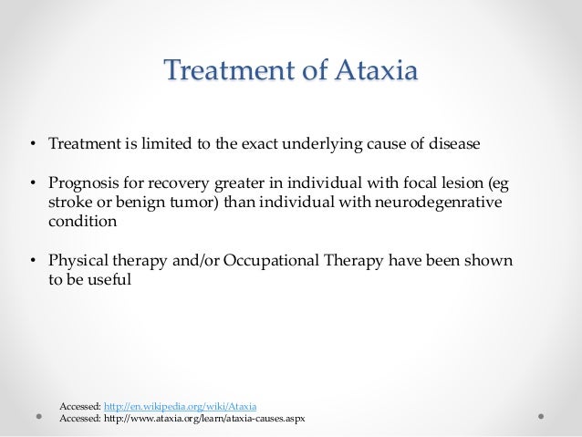 Ataxia treatment occupational therapy. These treatments include speech occupational and physical therapy as well as medications. American Journal of Occupational Therapy JanuaryFebruary 2000 Vol. 10 with Cerebellar Ataxia 6 with Sensory Ataxia Intervention 4 weeks of Intensive therapy with a therapist 3x a week for 1 hour sessions Results Decline of average of 52 points on SARA Increased Gait Speed Less Variability of step placement All equal less risk for falls.