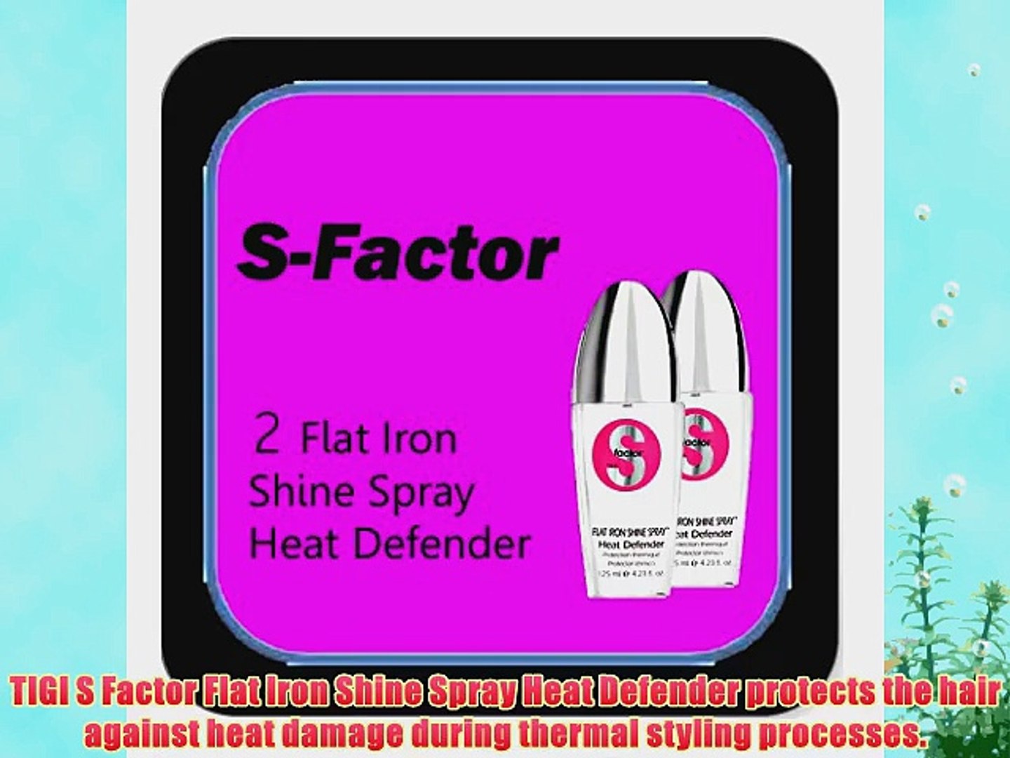 See 87 member reviews and photos. Provides ultimate thermal protection. Tigi S-Factor Flat Iron Shine Spray Heat Defender 125ml This high tech thermal protectant provides a soft shine with a healthy finish while styling with a flat iron and also protects from daily UV rays.