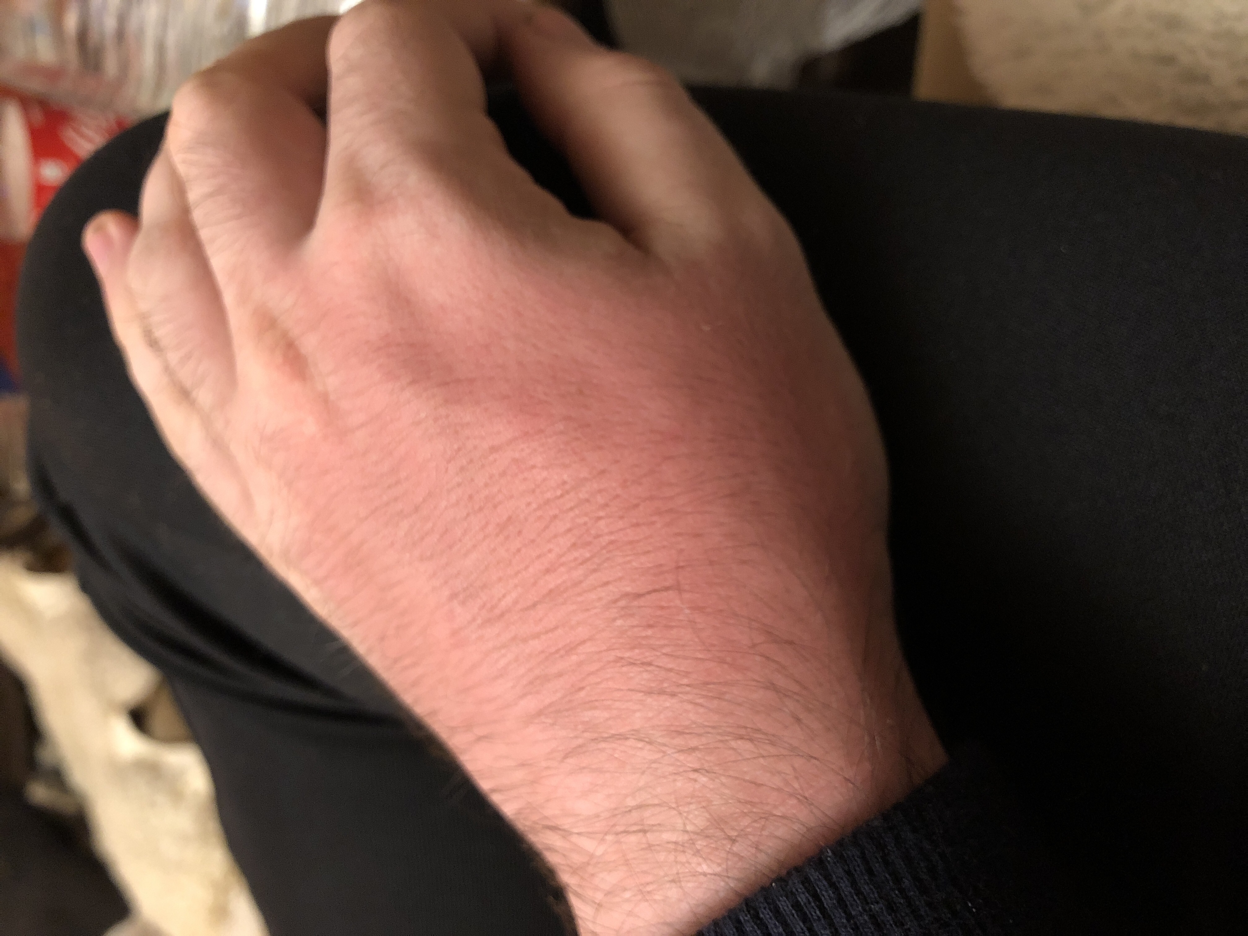 Des Armes Des Halses. Die Extremität schmerzt bei Druck und Bewegung ist angeschwollen und gerötet. Man sah sogar durch die Haut durch eine Rötung.