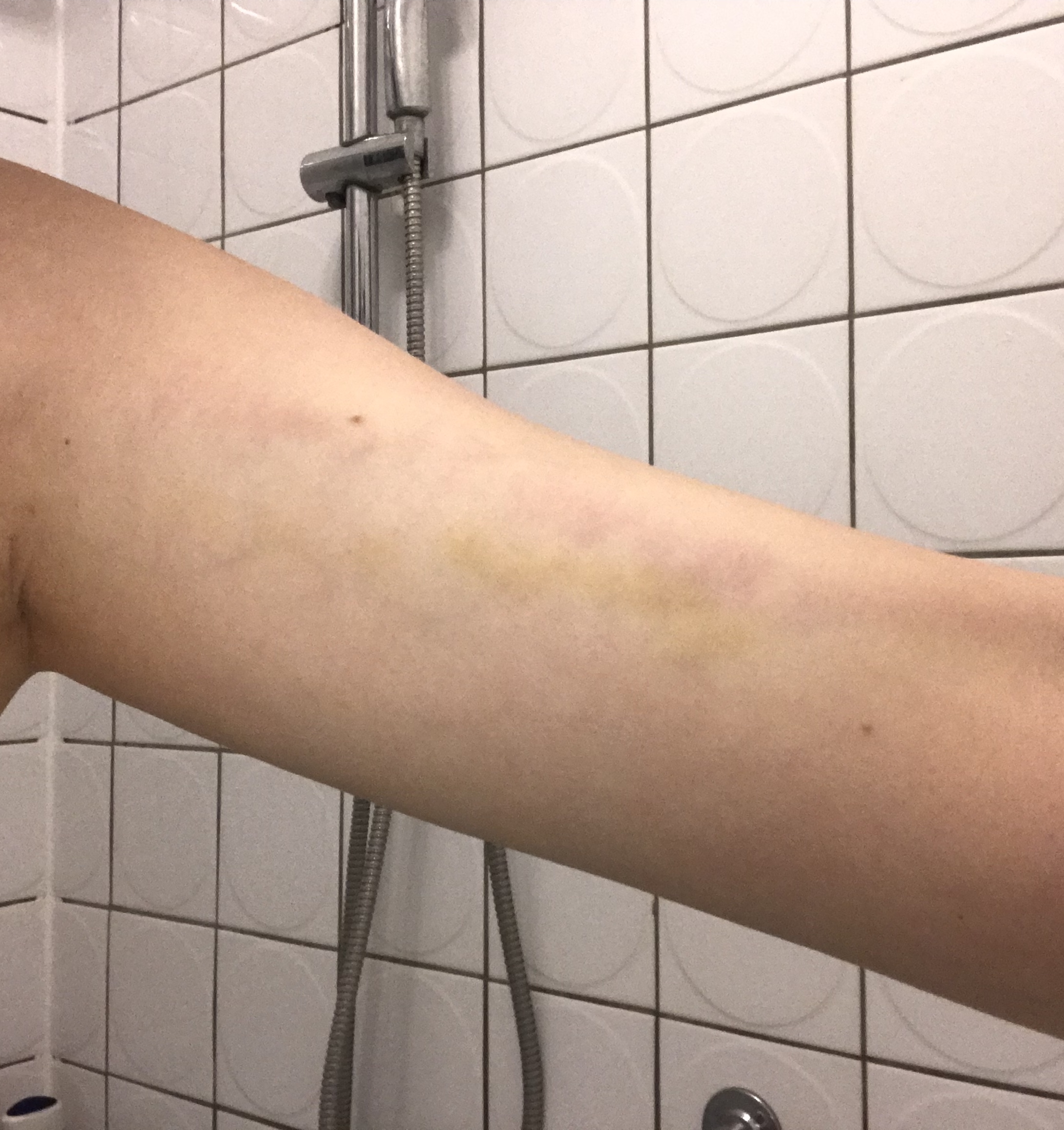 Venenentzündung im arm durch kanüle. War sehr schmerzhaft daher wurde der Arm gewechselt am anderen Arm dann das gleiche nochmal. Eine oberflächliche Entzündung der Vene. VenenentzündungVerhärtung durch Invusionszugang nach Krankenhausaufenthalt.