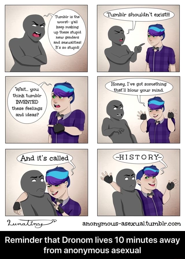 Press the and keys to navigate the gallery g to view the gallery or r to view a random image. Know Your Meme is an advertising supported site and we noticed that youre using an ad-blocking solution. 10 Year Challenge Meme 2014 458 December 37 November 35 October 30 September 49 August 39 July 29 June 30 May 42 April 38. See more Anonymous Asexual images on Know Your Meme. Hey yall my names Luna and my pronouns are theythemtheir. If you make one ill be glad to join. Press the and keys to navigate the gallery g to view the gallery or r to view a random image. This topic is answered by a medical expert. Ok But They Have To Know Right Anonymous Asexual.