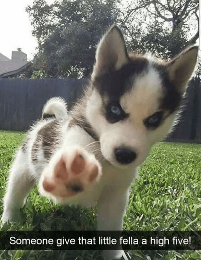 High five dog meme. A series of photos of a purebred and fashionable welsh corgi pembroke dog with a large fluffy tail in. Share the best GIFs now. Browse and add captions to Puppy High Five memes.