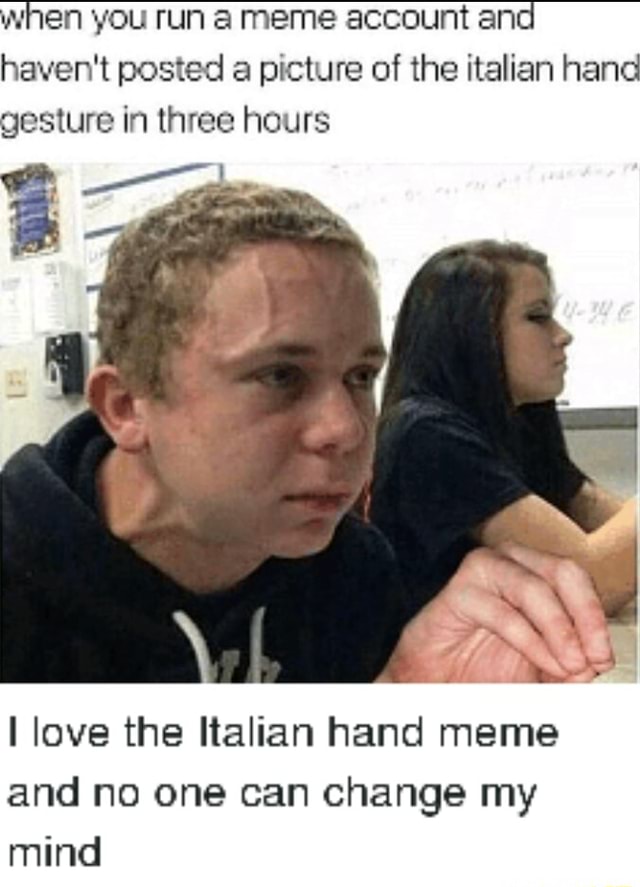 Without forgetting the funny bickering on the bench between Barella and Locatelli. Images tagged italian hand gestures. Make your own images with our Meme Generator or Animated GIF Maker.