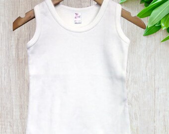 Infant white tank tops Baby tank tops Baby white tank tops Bulk white tank tops Plain Baby tank tops in Solid Colors Our t-shirts are available in 100 Polyester and 6535 Polyester Cotton Blend with Interlock Knit to provide decorators with a stable surface for custom screen printing sublimation printing embroidery vinyl heat transfers iron Ons DTG and applique.