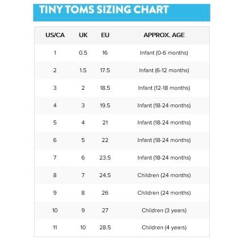 Baby Toms Size Chart. TOMS Kids Size Chart. TOMS Shoe Size Chart.