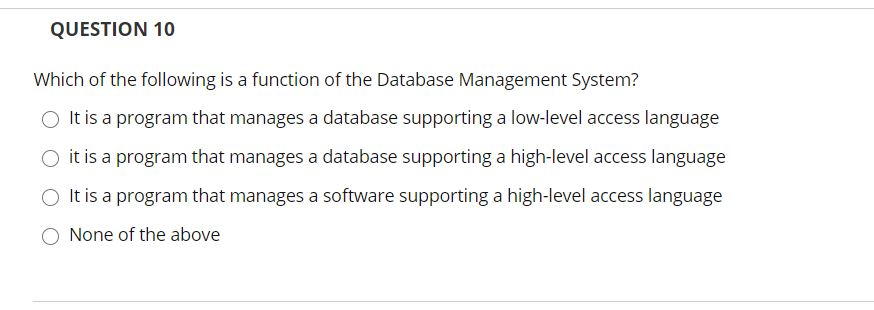 Which Of The Following Is A Function Of The Dbms In A Database System?