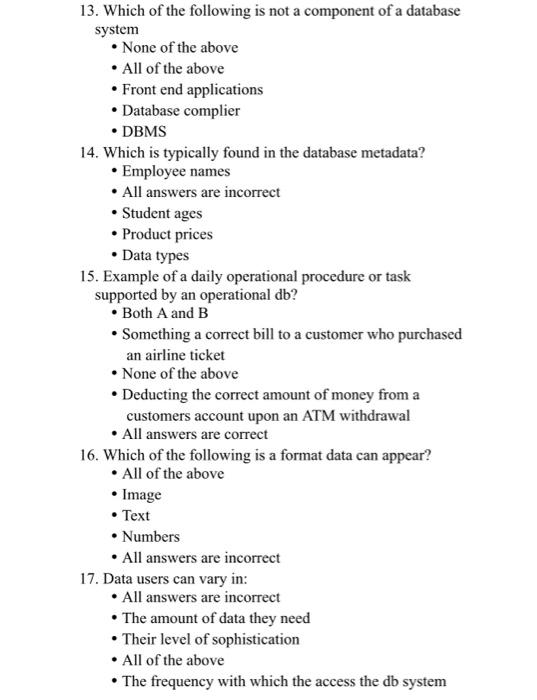The following are functions of a DBMS except _____ Acreating and processing formsBcreating databasesCprocessing dataDadministrating databases. Which of the following is a function of the DBMS in a database system. Create and process forms D. D It uses hypertext markup language to process information in a. Which of the following is considered an administrative function of the database management system DBMS. The following are functions of a DBMS except _____. Direct management of data in the external memory. A Create and transmit queries B Control applications C Create and process forms D Perform backup and recover E Process Web page requests. Keeping a log or protocol of the executed operations in the database.